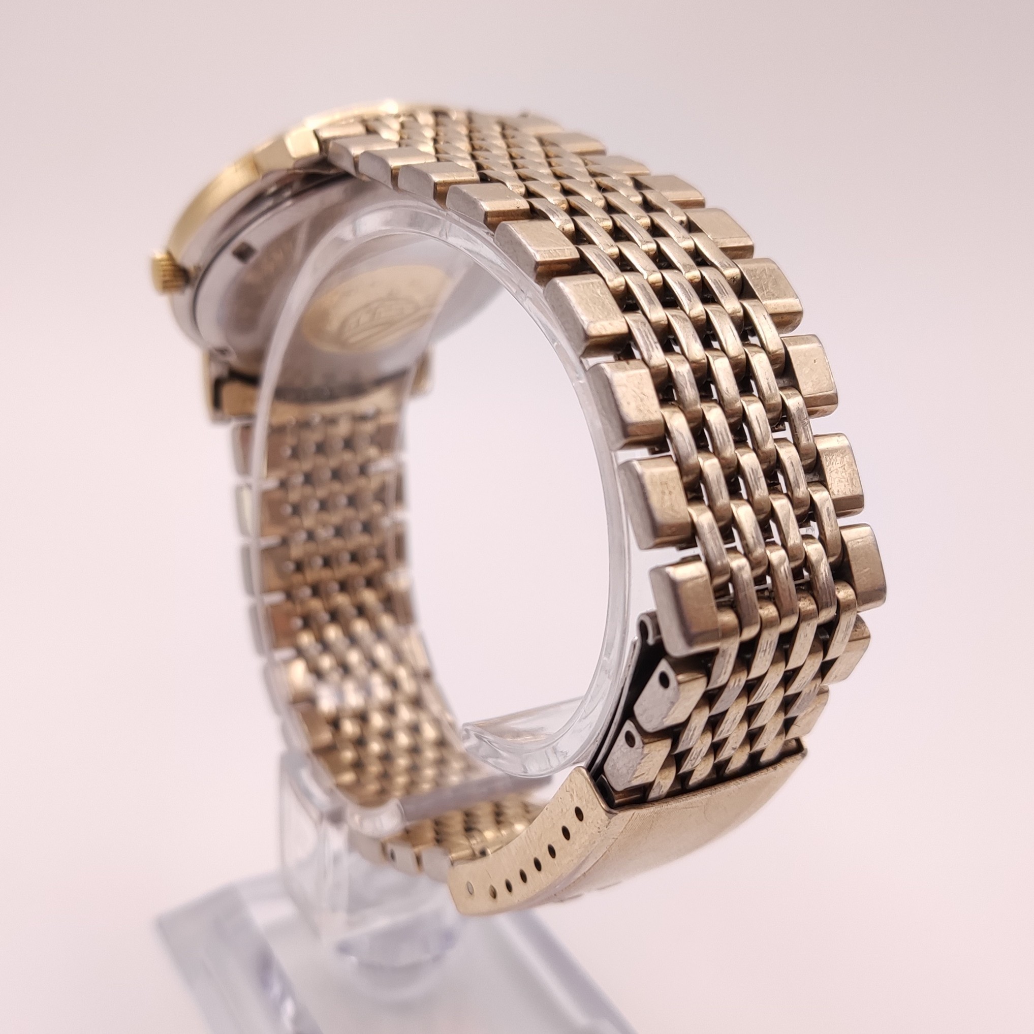 At the heart of this piece is the iconic “C-Shape” case, a hallmark of the world-renowned designer Gérald Genta. The flowing lines merge effortlessly into the rare brick-style integrated bracelet, creating a silhouette that feels more like jewelry than a mere timekeeper. The gold-plated finish adds a warm, sun-drenched glow to the wrist, perfect for those who appreciate a classic yet commanding presence.